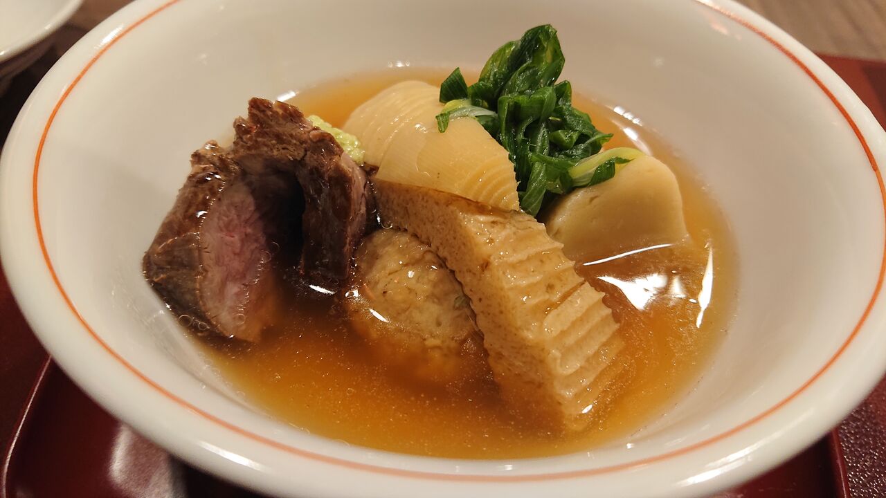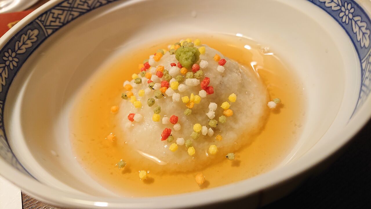 煮物椀は『南京のすり流し 大根餅の揚げだし 棒蟹 絹さや』