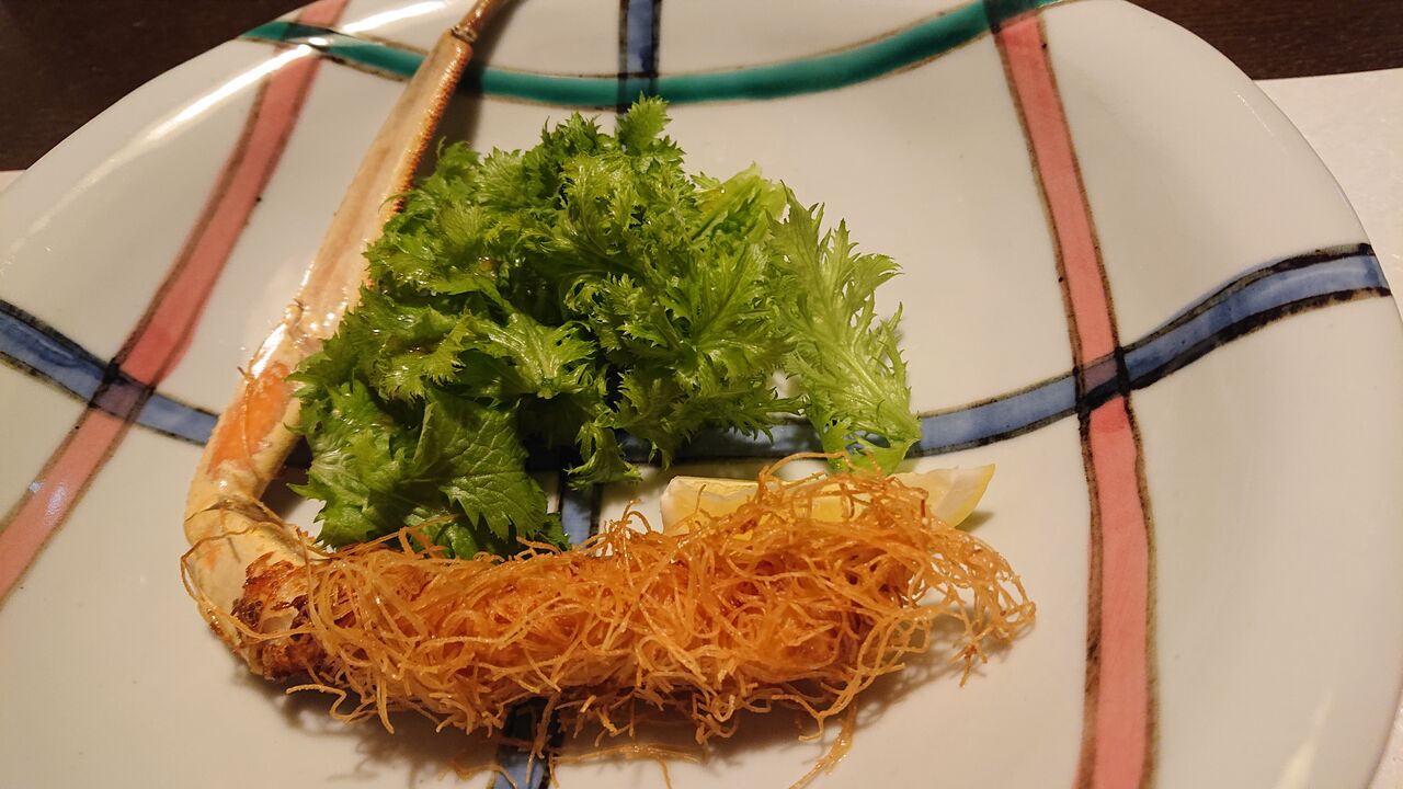箸附の『志賀町ころ柿、焼柿、香箱蟹と楚蟹雪花合え』と、