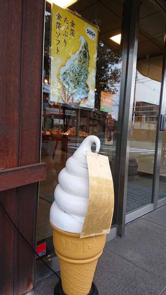 宿へ向かう道中、金沢らしく金箔のお店が軒を連ねる。