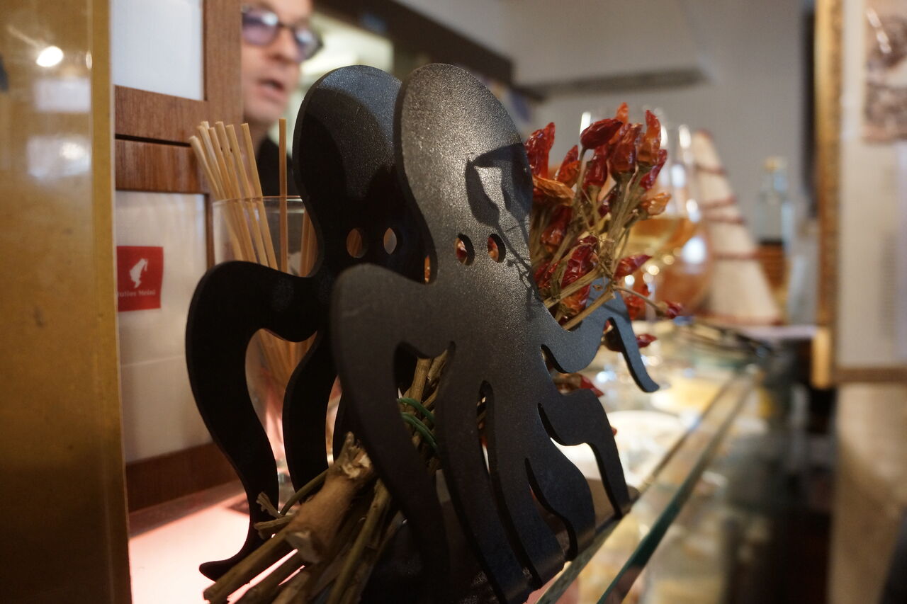 ゆかりのある美食家・陶芸家である北大路魯山人の小皿が飾られてたり。
