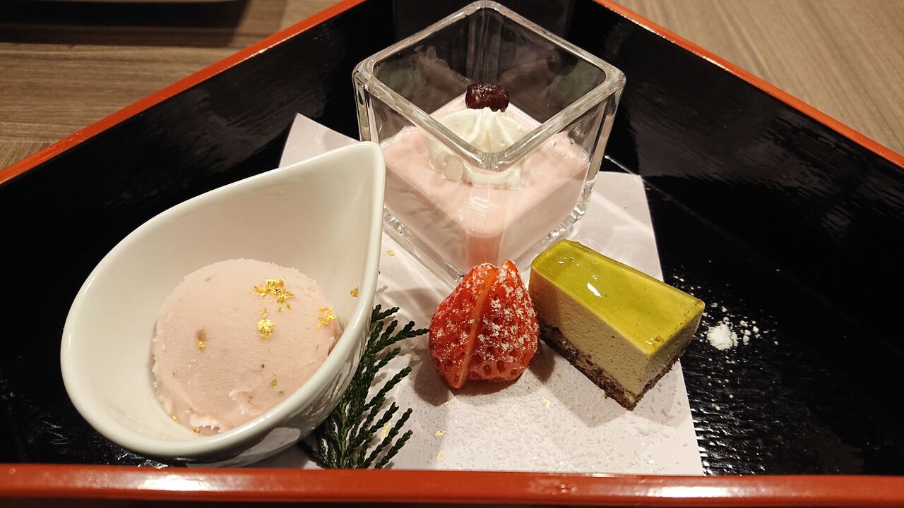 最後に水菓子に『苺プリン あまおう 苺ジェラート』