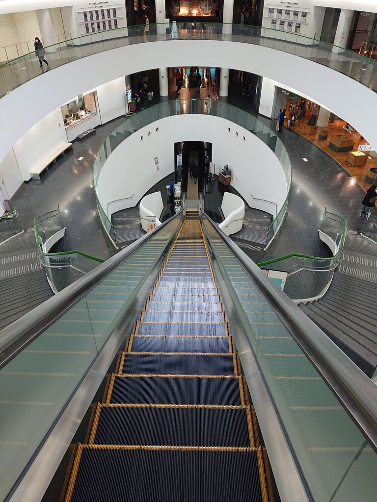 入り口ゲートからはエスカレーターで階下へ。憎い演出。