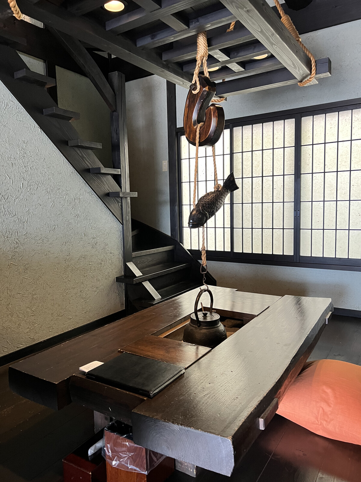 ダイニングには囲炉裏がどーんと。