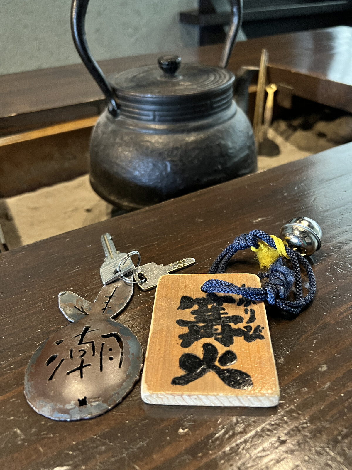 離れの貸し切り風呂へは手前の籠を持って。