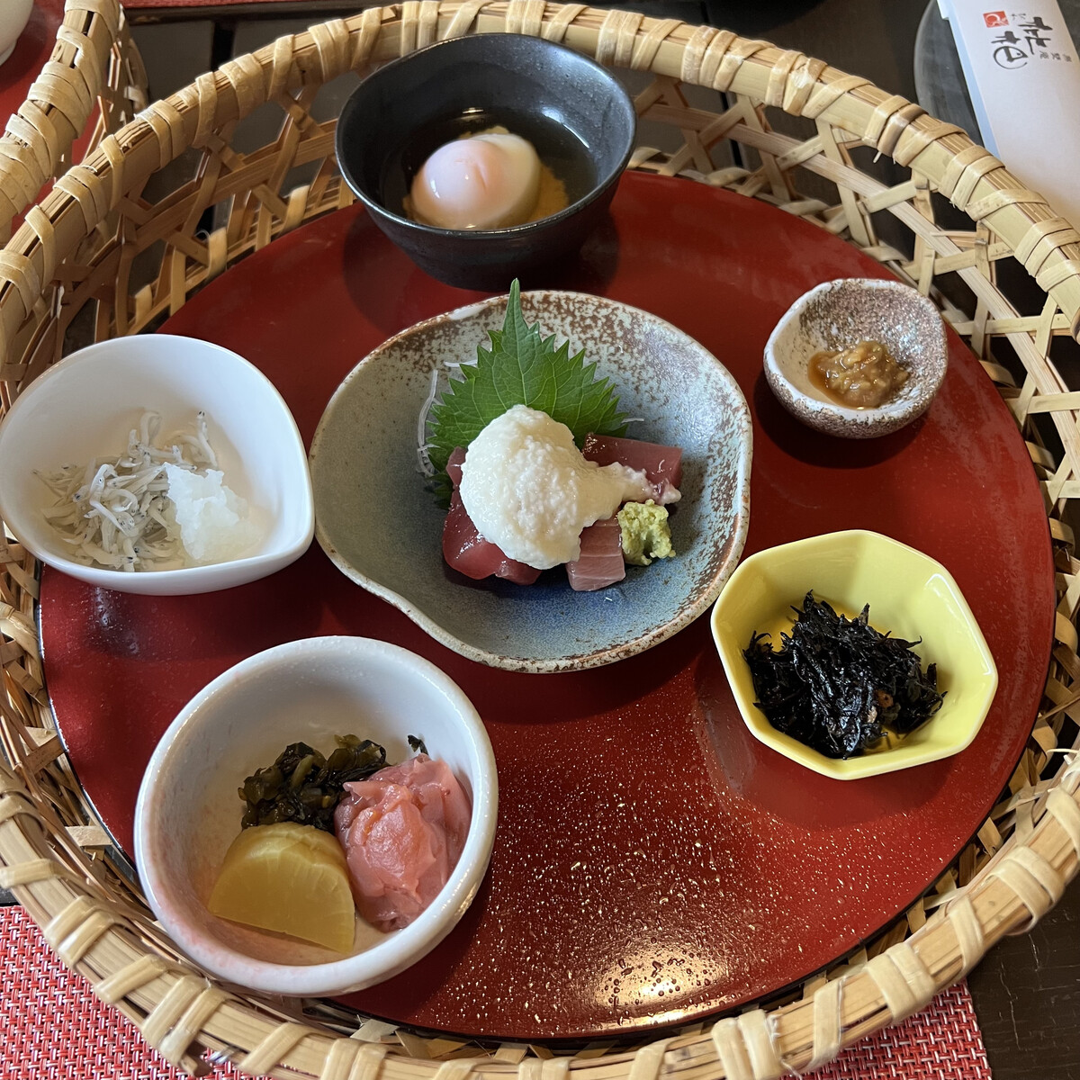 小鉢には山掛けや温泉卵、しらすなどなど。
