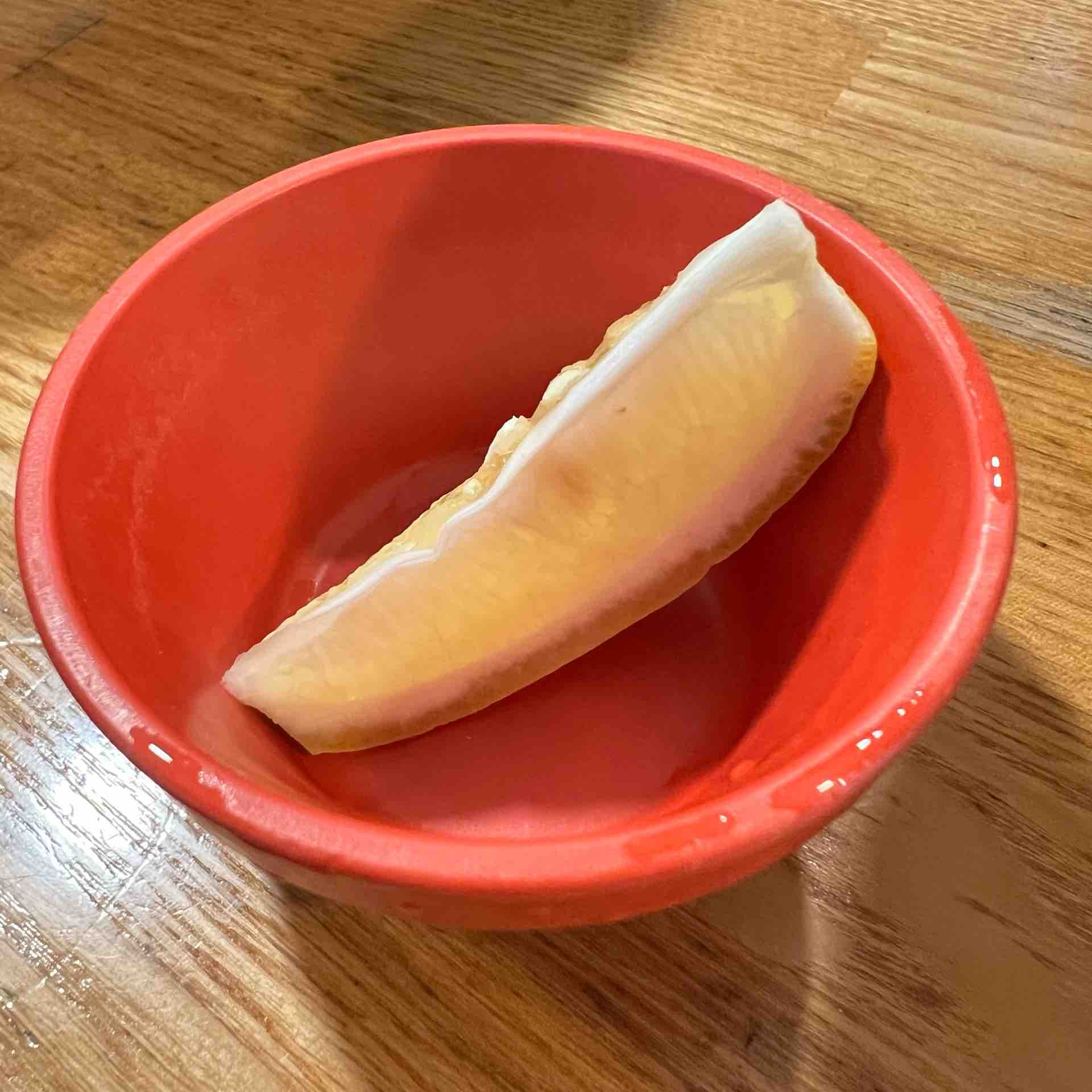 小皿に盛られて一くし。ぐっと絞って麺を人啜り。なるほどさっぱり感はもとより旨みやコクの輪郭がよりはっきりすると言うか。レモンあり寄りのありです。