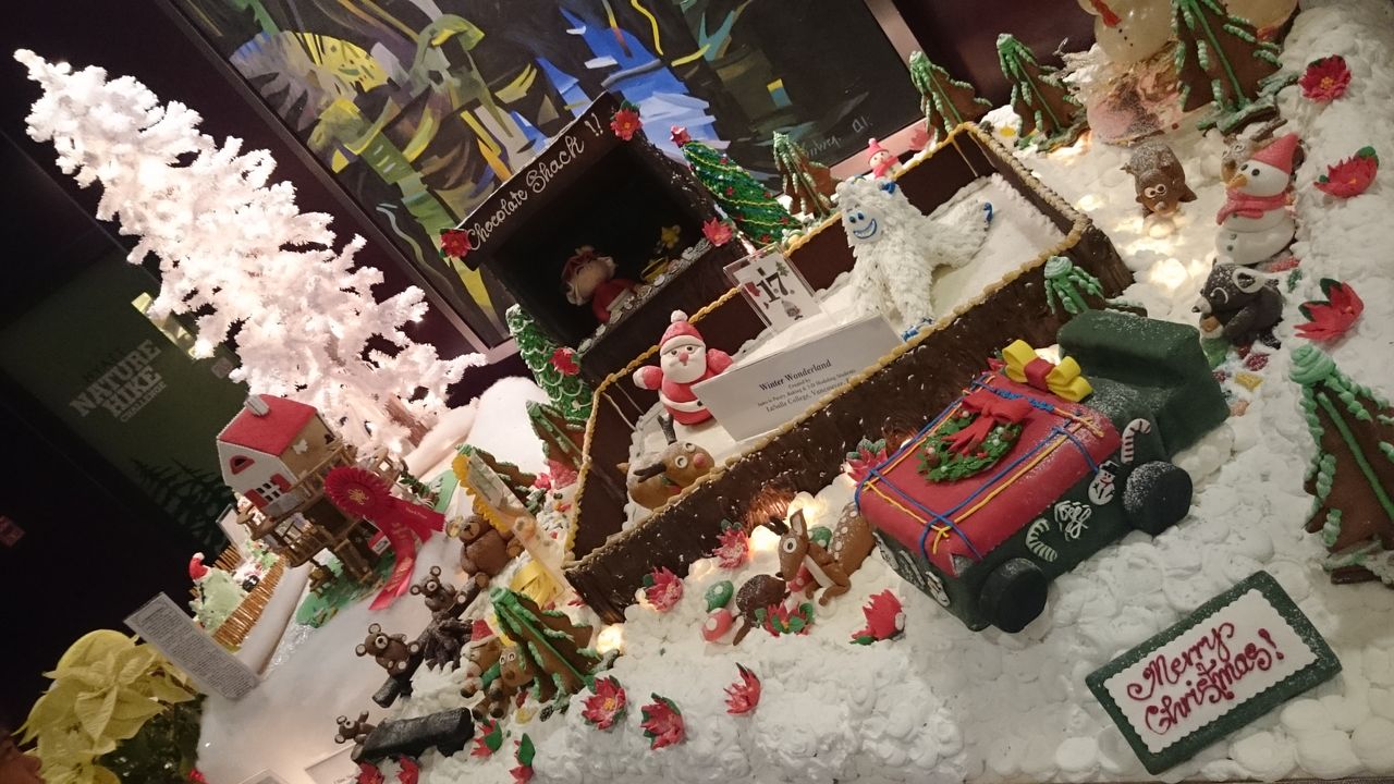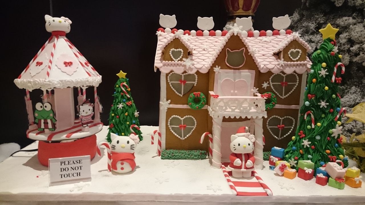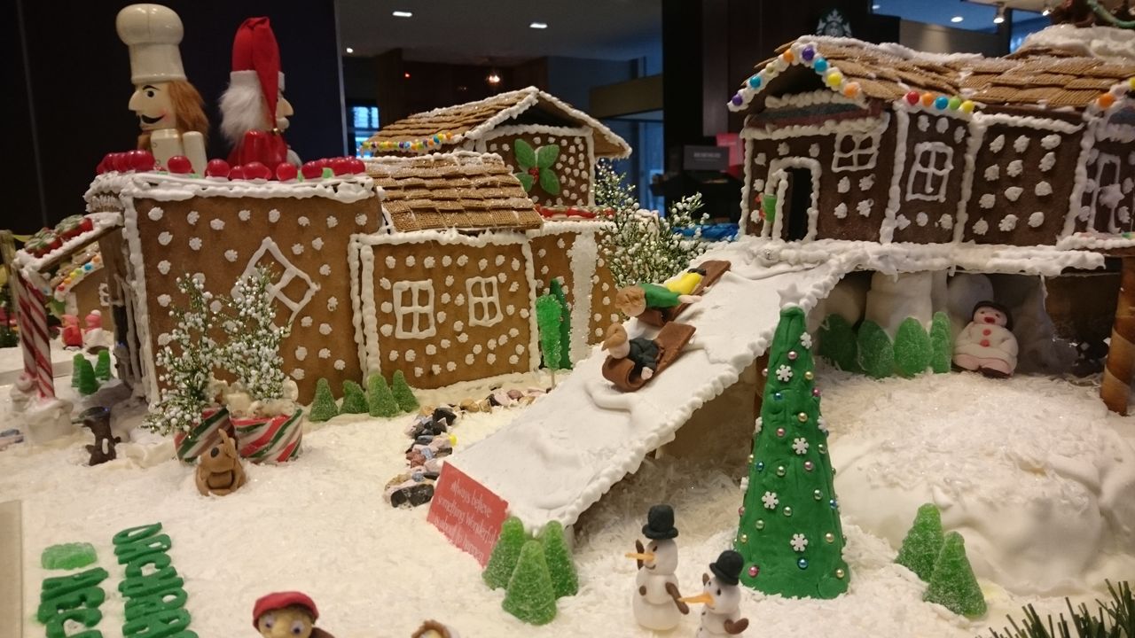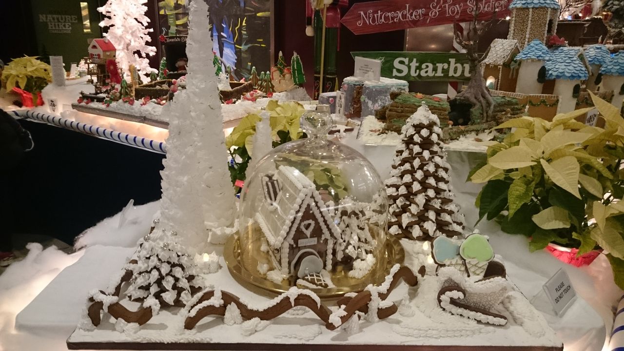 フロント脇のラウンジで、ジンジャーブレッドハウスの展示会が