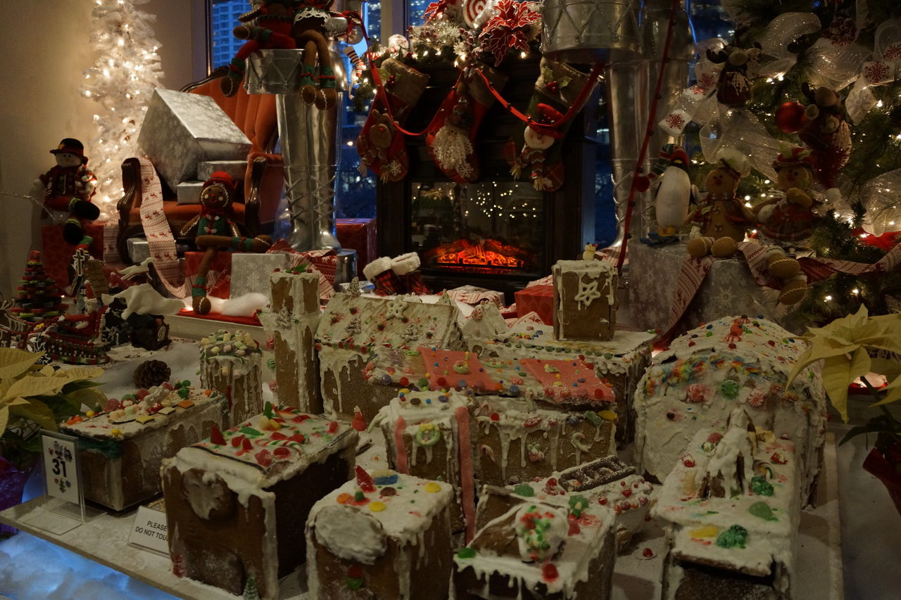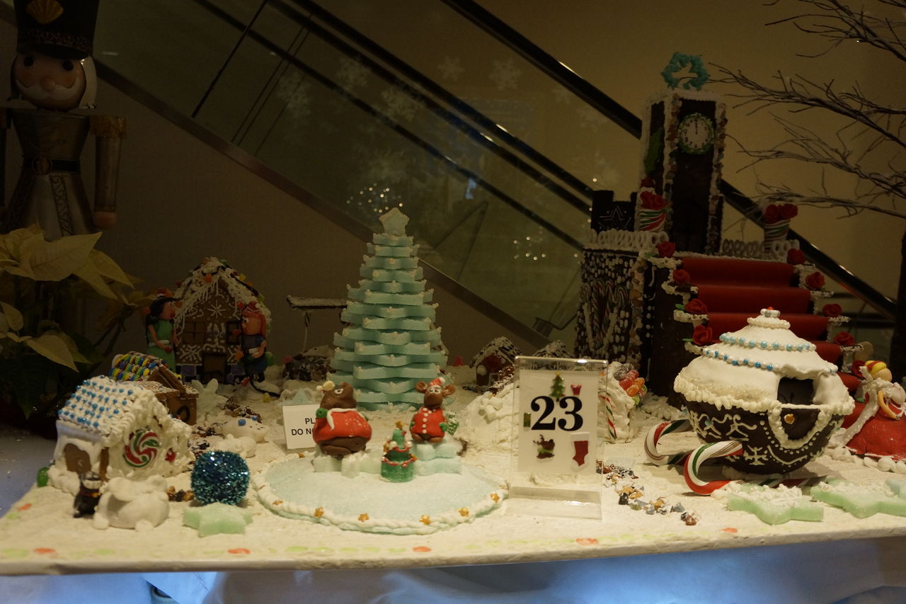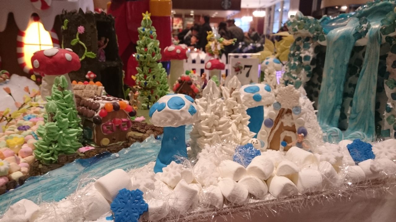 フロント脇のラウンジで、ジンジャーブレッドハウスの展示会が