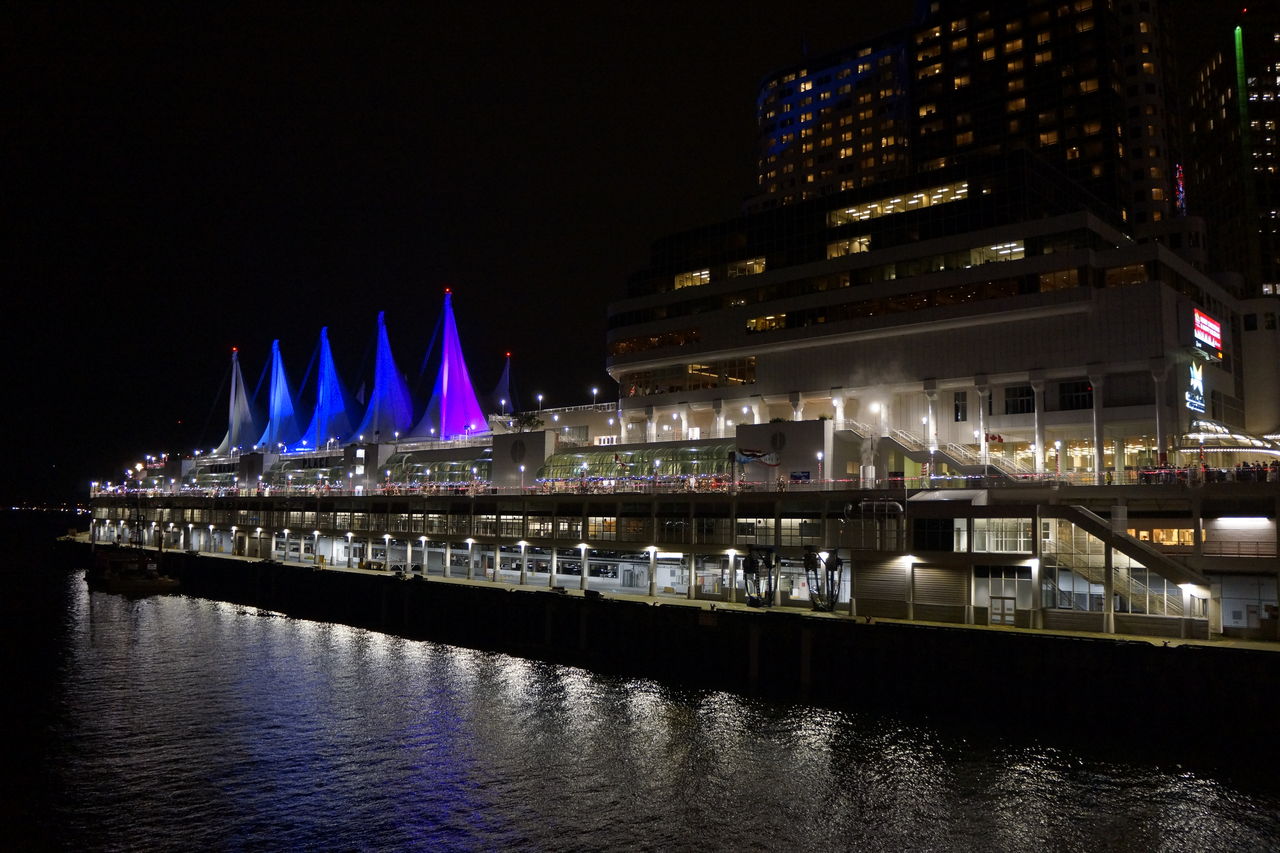 ライトアップされたカナダプレイスがを横目に会場のエントランスへ。