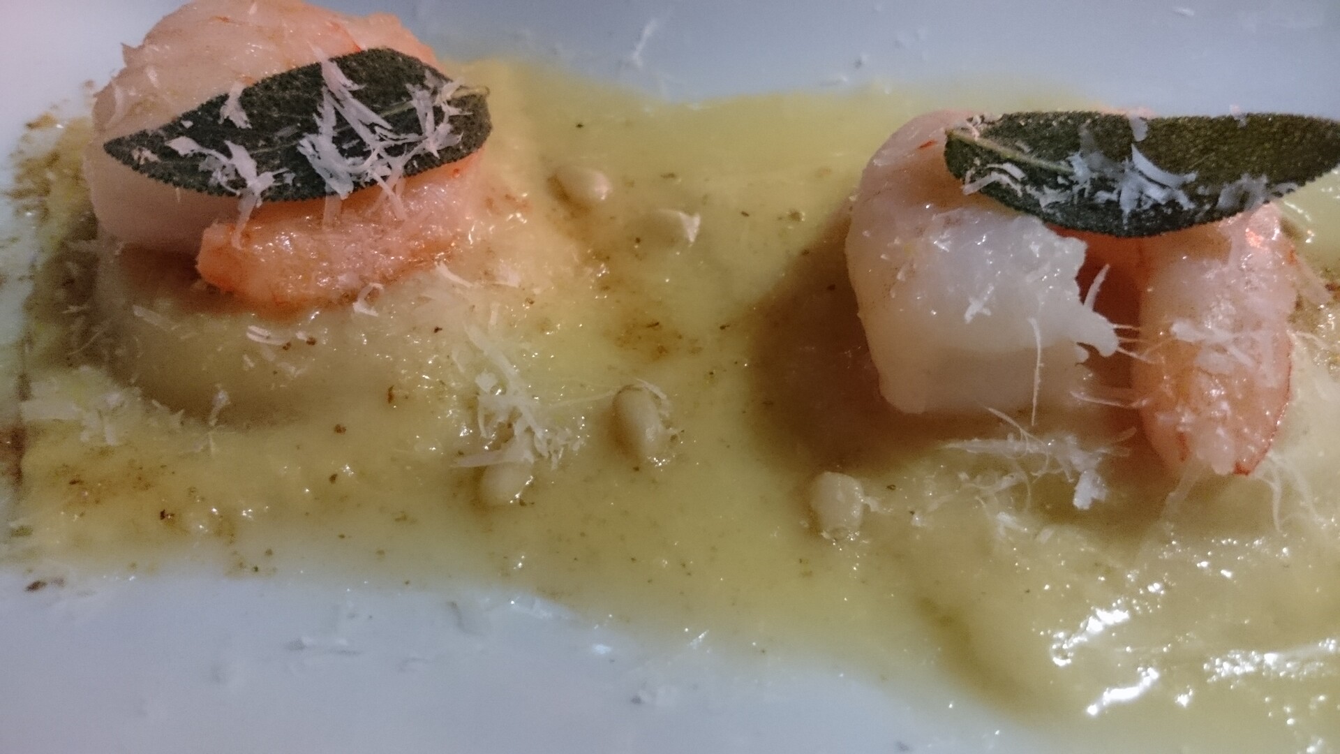 まずはエビのラビオリ$8.00。