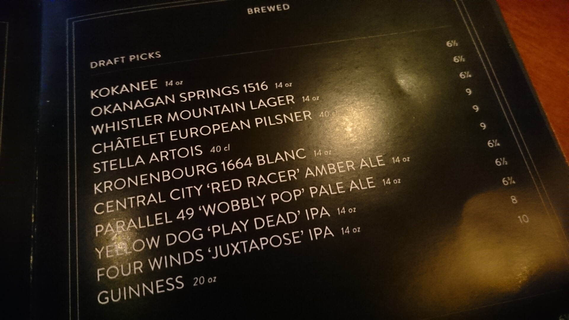 オカナガンスプリング・1516バヴァリアン・ラガー$6.5。