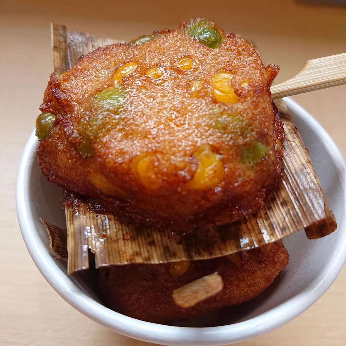 出来上がった『とうもろこし&枝豆入り揚げかま』