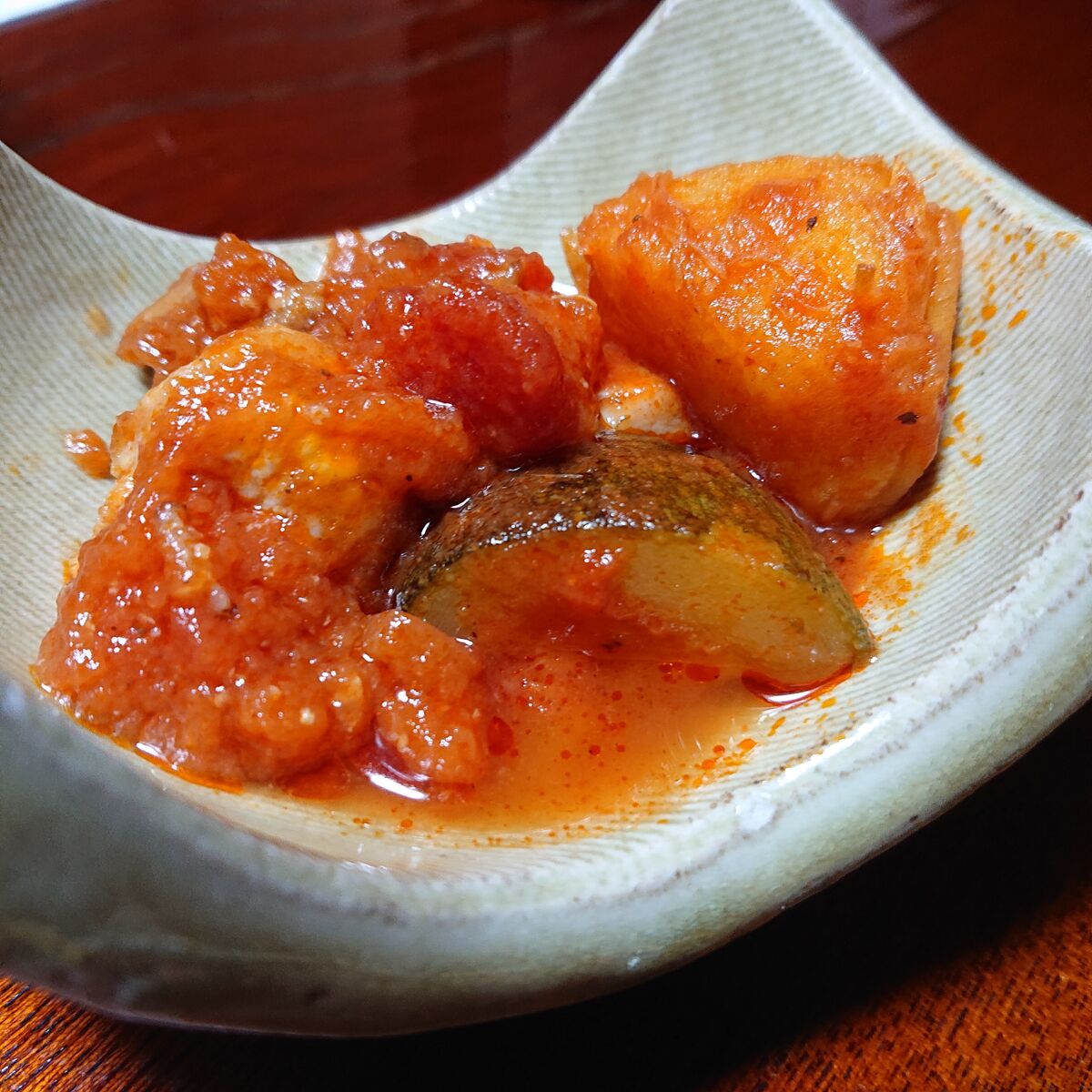 そしてここで洋の鉢『鶏モモ肉のトマト漬』